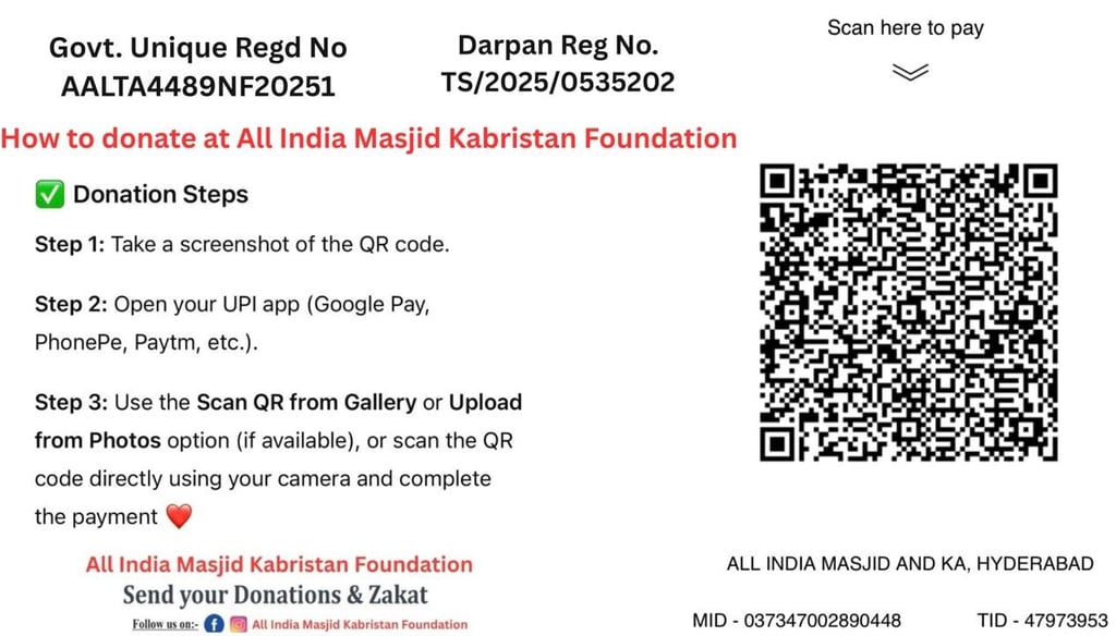 Your donation helps build masjids, repair graveyards, and provide Islamic education for children in our community.